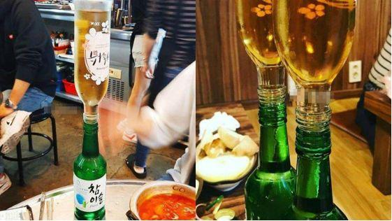 韩国人爱喝酒,特别是炸弹酒,关于炸弹酒起源,大多数的说法是韩国军人看到美军军营没有下酒菜,喝威士忌的时候以啤酒作为“辅菜”,加之制作和喝酒的联想,取名为“炸弹酒”。在韩国传统观念是“右尊左卑”,所以他们用左手执杯的话,会被认为不礼貌。经长辈允许,下级(晚辈)才可向上级(长辈)敬酒。敬酒人右手提酒瓶,左手托瓶底,上前鞠躬、致词,为上级(长辈)斟酒,一般是一连三杯,敬酒人只是敬酒,自己是不能与长辈同饮的。长辈和前辈先喝,后辈则端起酒杯,侧过脸去喝,以表示对长辈和前辈的尊敬。